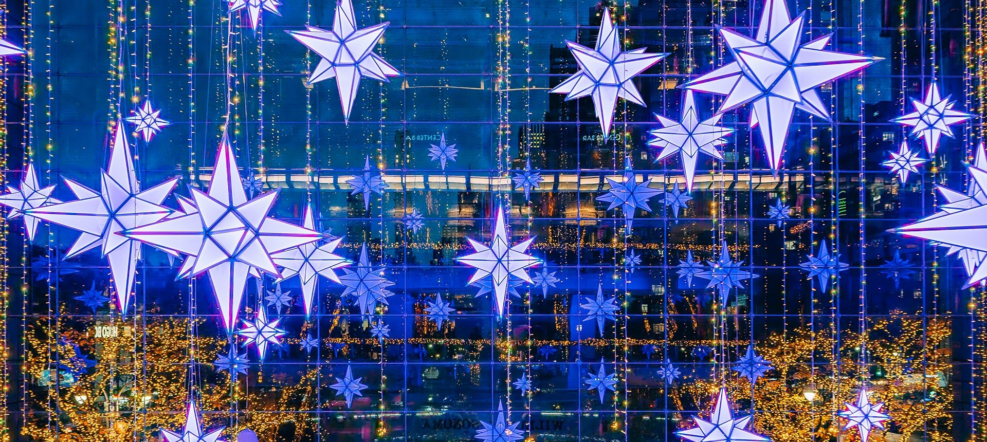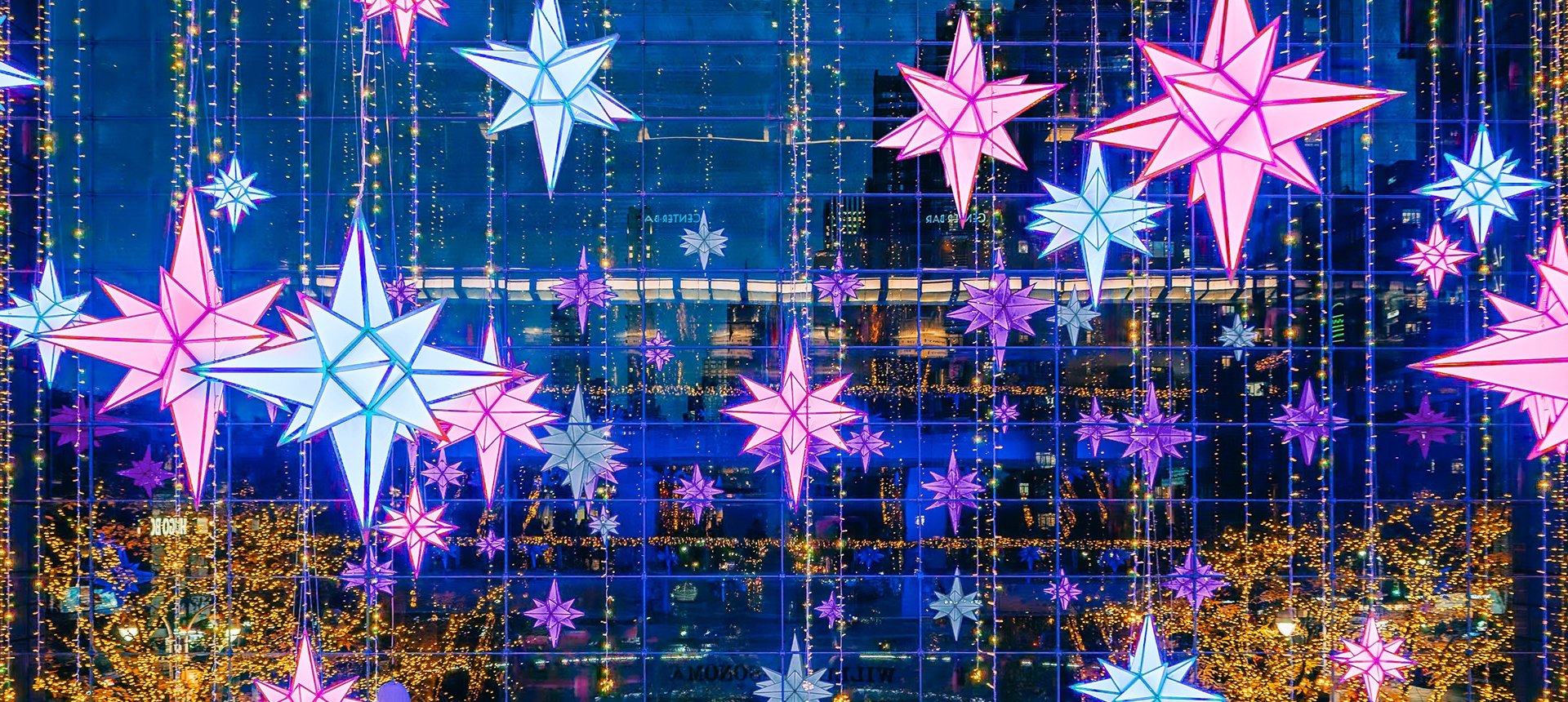 A dazzling light spectacle with 44 choreographed stars illuminating The Shops every 30 minutes from 5PM–midnight